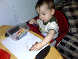 At 18 months, he has learned to express himself visually – a precursor to both writing and illustrating his own stories.