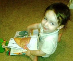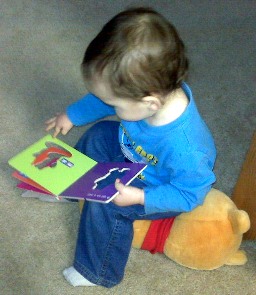 At home, he chooses this book from his “Library Bag” and sits on the floor to enjoy the illustrations.